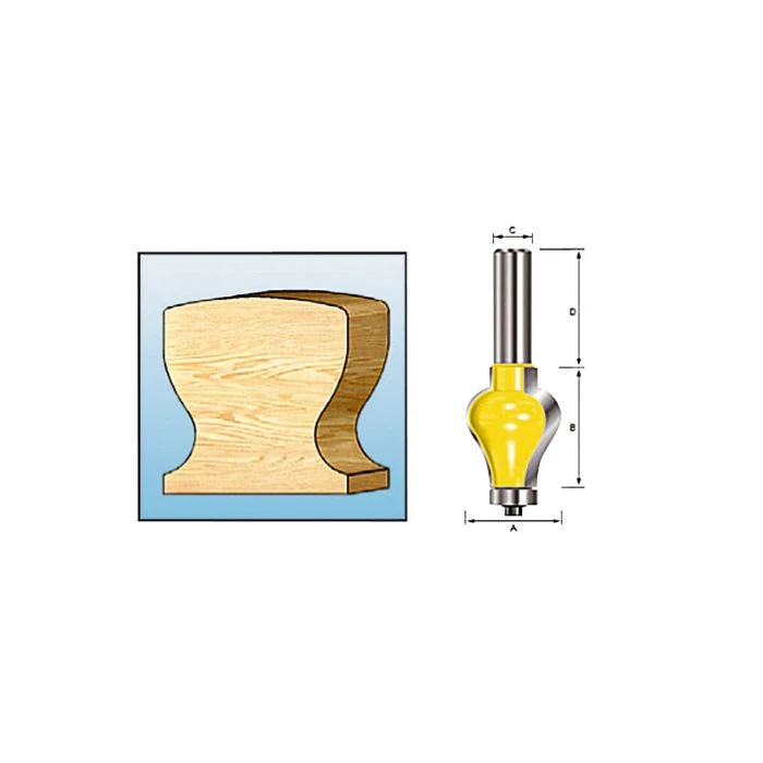Hardmetalen handgreepprofielfrees met kogellager.