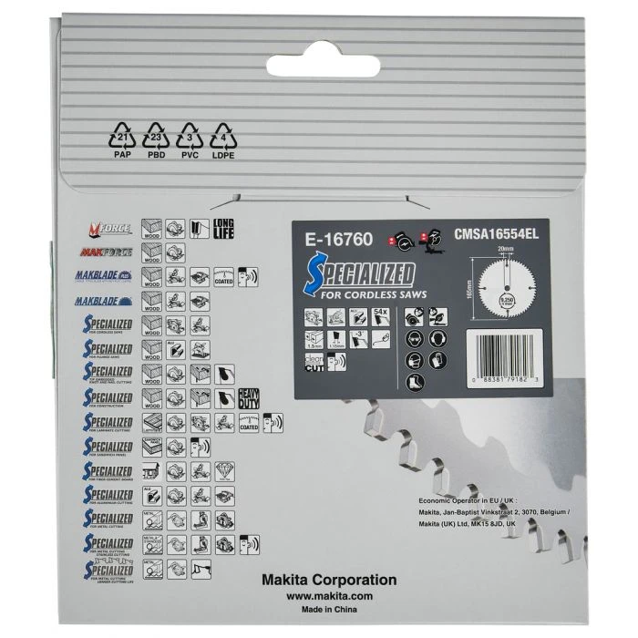 Kies een zaagblad voor het te zagen materiaal en passend op de te gebruiken machine; er zijn verschillende kwaliteiten, waarbij de Makita Efficut zaagbladen tot het top segment behoren.